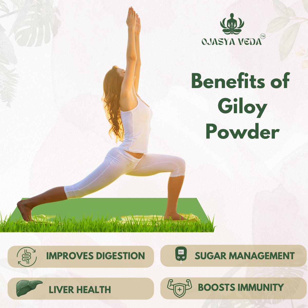Ojasya Veda Giloy Powder boosts immunity, purifies blood, improves digestion, and supports respiratory health. 100% pure, natural & chemical-free.